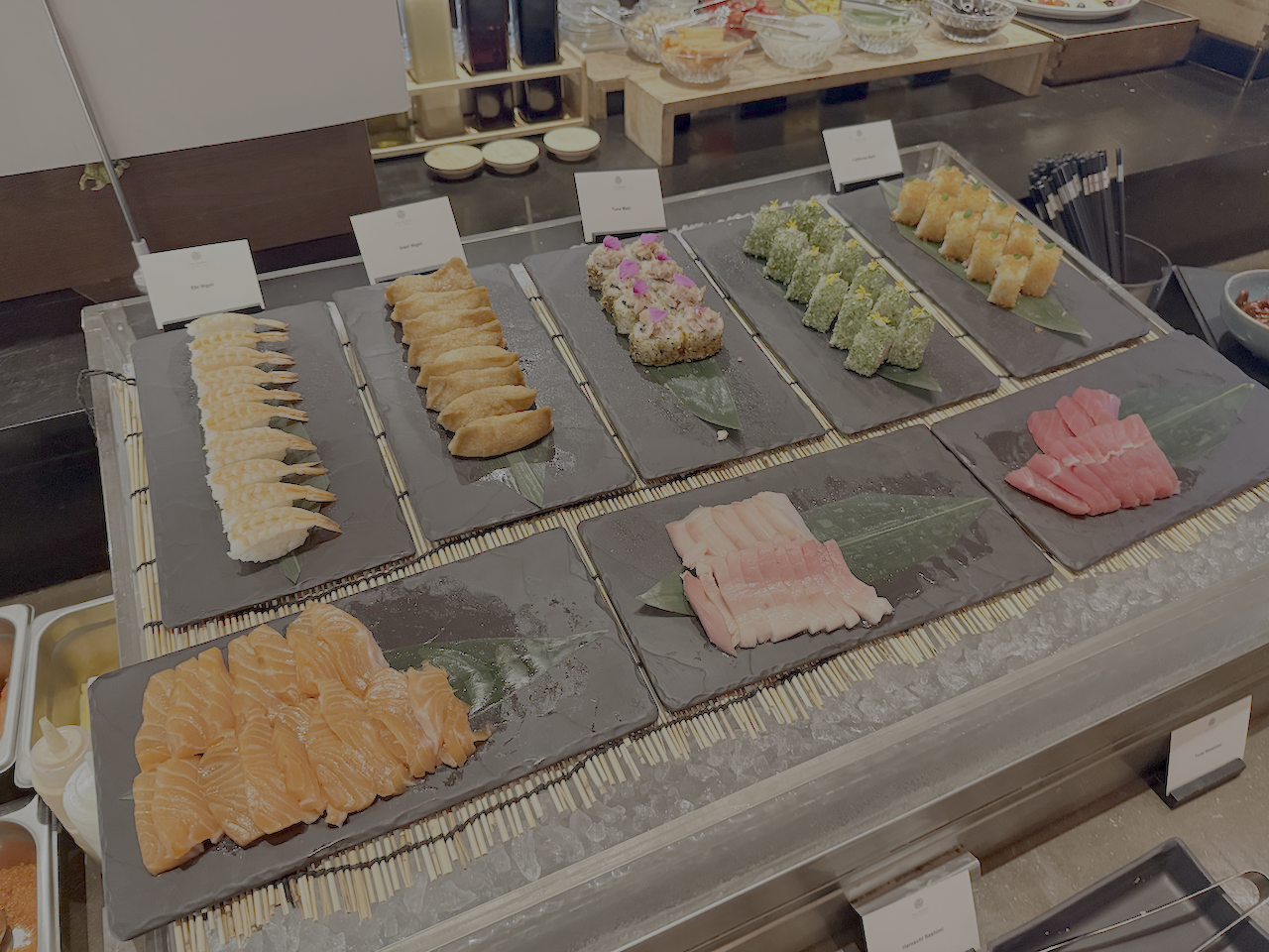 Beyond the main highlights, the buffet dazzles with a variety of stations — from Japanese sashimi and curated charcuterie to artisanal cheeses, hearty pasta, and