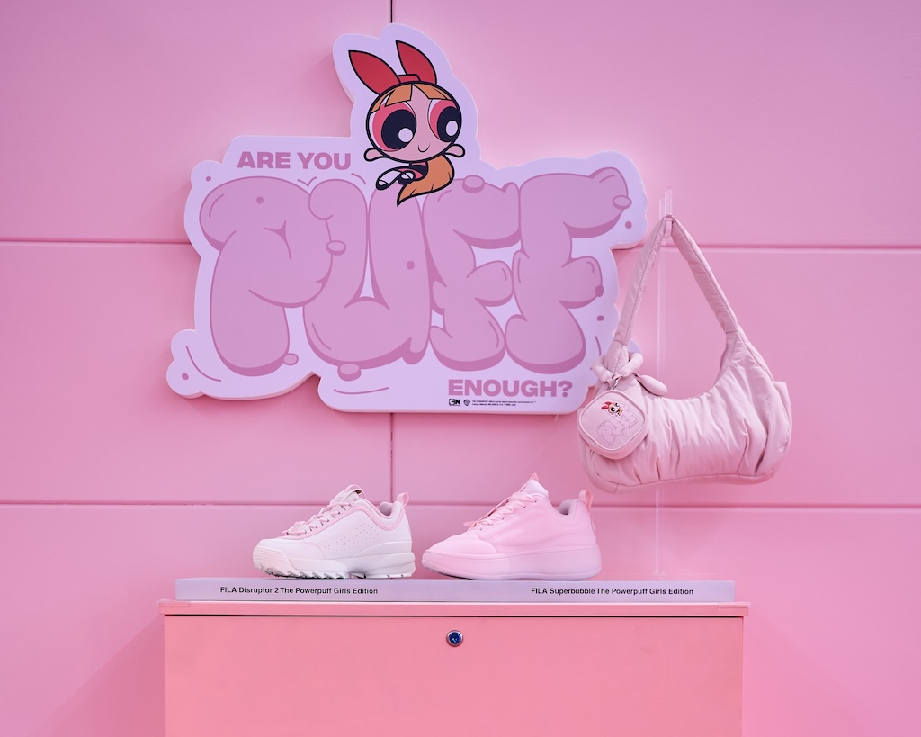 The lineup was a colourful explosion of all things FILA-coded: chunky outlines, bold trims, and pops of pink, blue and green. The Cloud Shoulder Bag got a playful makeover in the girls’ signature shades, turning into the everyday bag everyone suddenly needed. The Superbubbles footwear line delivered comfort-meets-cute, while the iconic FILA Disruptor made a comeback—this time dressed in Powerpuff attitude.