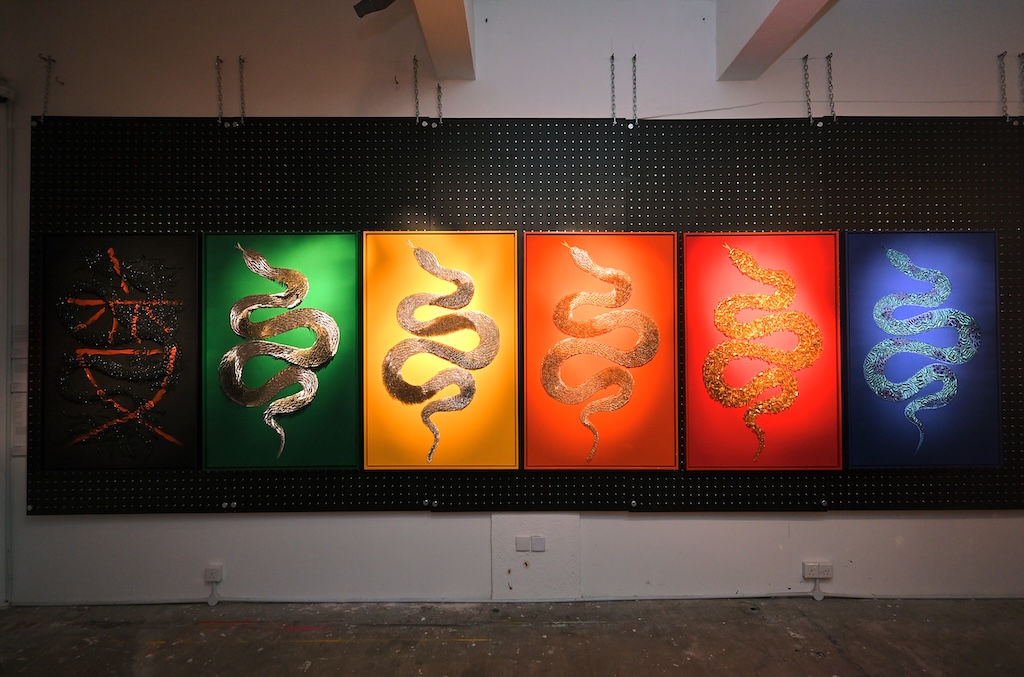 Born from ten days of Vipassana meditation in India and inspired by the rare Year of the Wood Snake, MYTH Creation marks a deliberate shedding of skin. Where MYTH Evolution explored heritage through the symbolism of the Dragon, this chapter turns inward. The Snake — patient, introspective, and quietly powerful — becomes Chandran’s new muse.